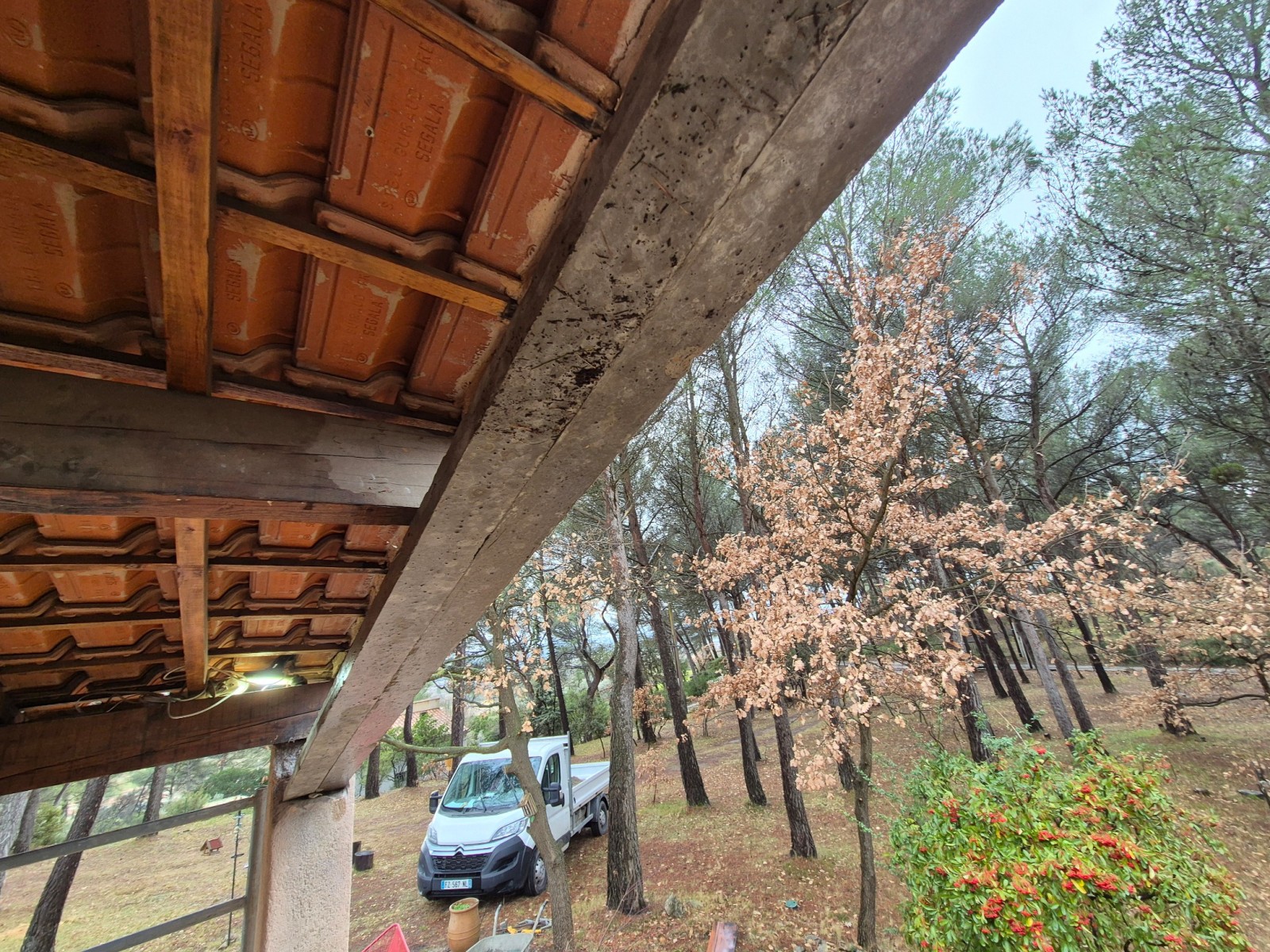 Le remplacement de poutre en béton armé sous toiture – Rousset (13) – apporte une structure solide et durable.