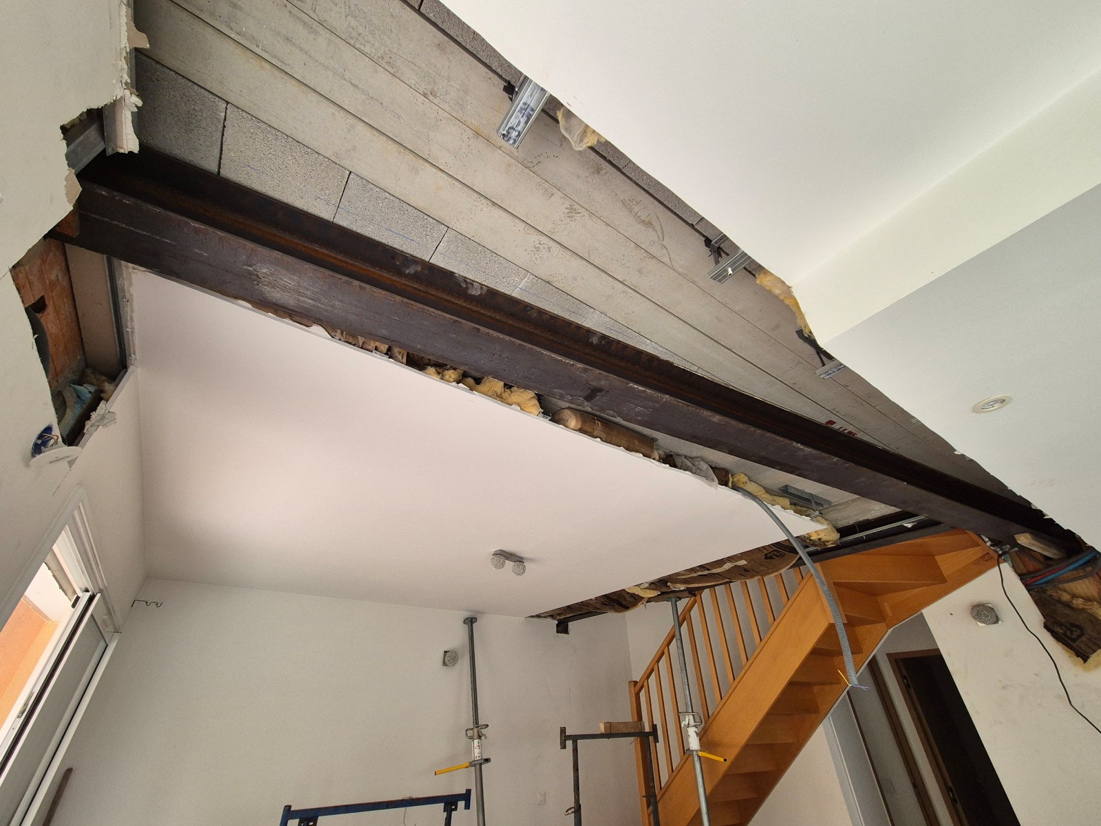Le renforcement de plancher affaissé – Rousset (13) – poutres IPN acier, reprise placoplâtre a permis de sécuriser durablement la structure.