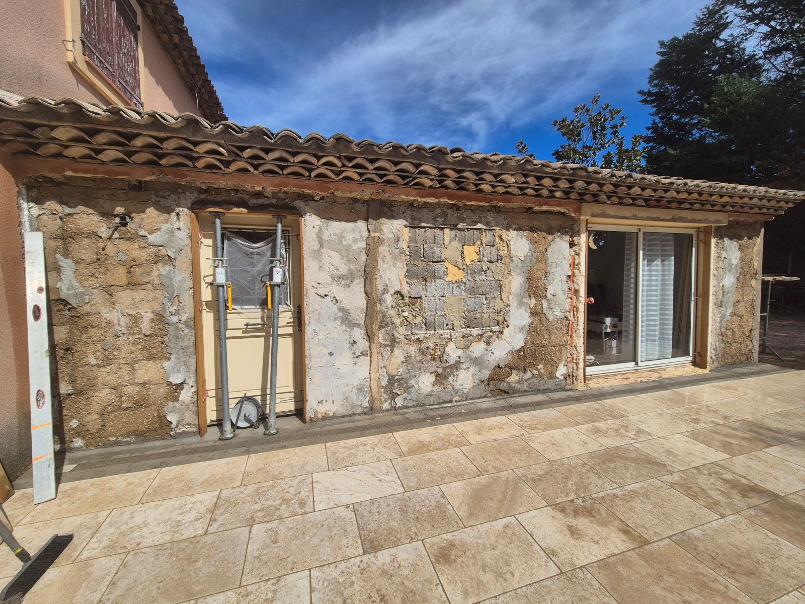 Nous avons retiré l’isolation thermique par l’extérieur devenue obsolète. La dépose a été faite avec soin pour préserver les supports et les déchets ont été triés et évacués.