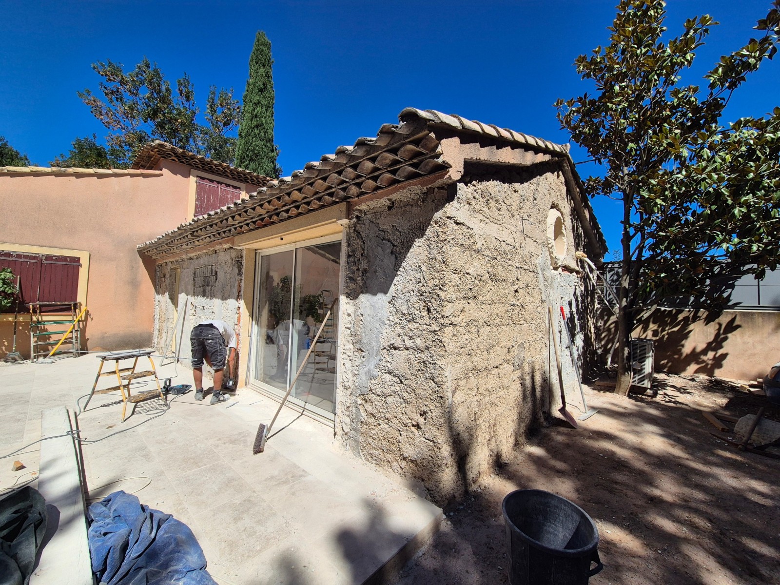 Nous sommes intervenus à Rousset, dans les Bouches-du-Rhône, pour une rénovation complète de façades. Le chantier a compris la dépose d’une ancienne isolation extérieure, la reprise des murs à l’enduit fibré et la reconstruction des tableaux et bandeaux.