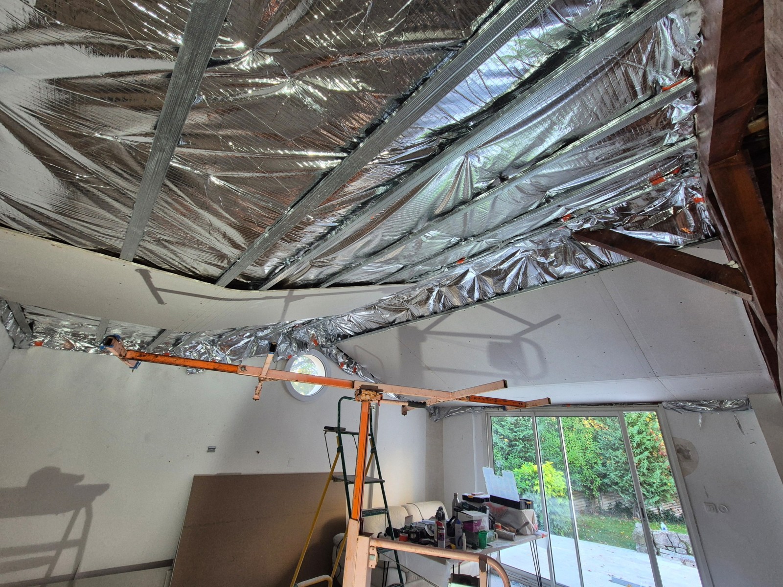 La rénovation de faux plafond, Rousset (13), avec ossature métallique, isolant mince multicouche et BA13, améliore l’isolation et modernise l’intérieur.