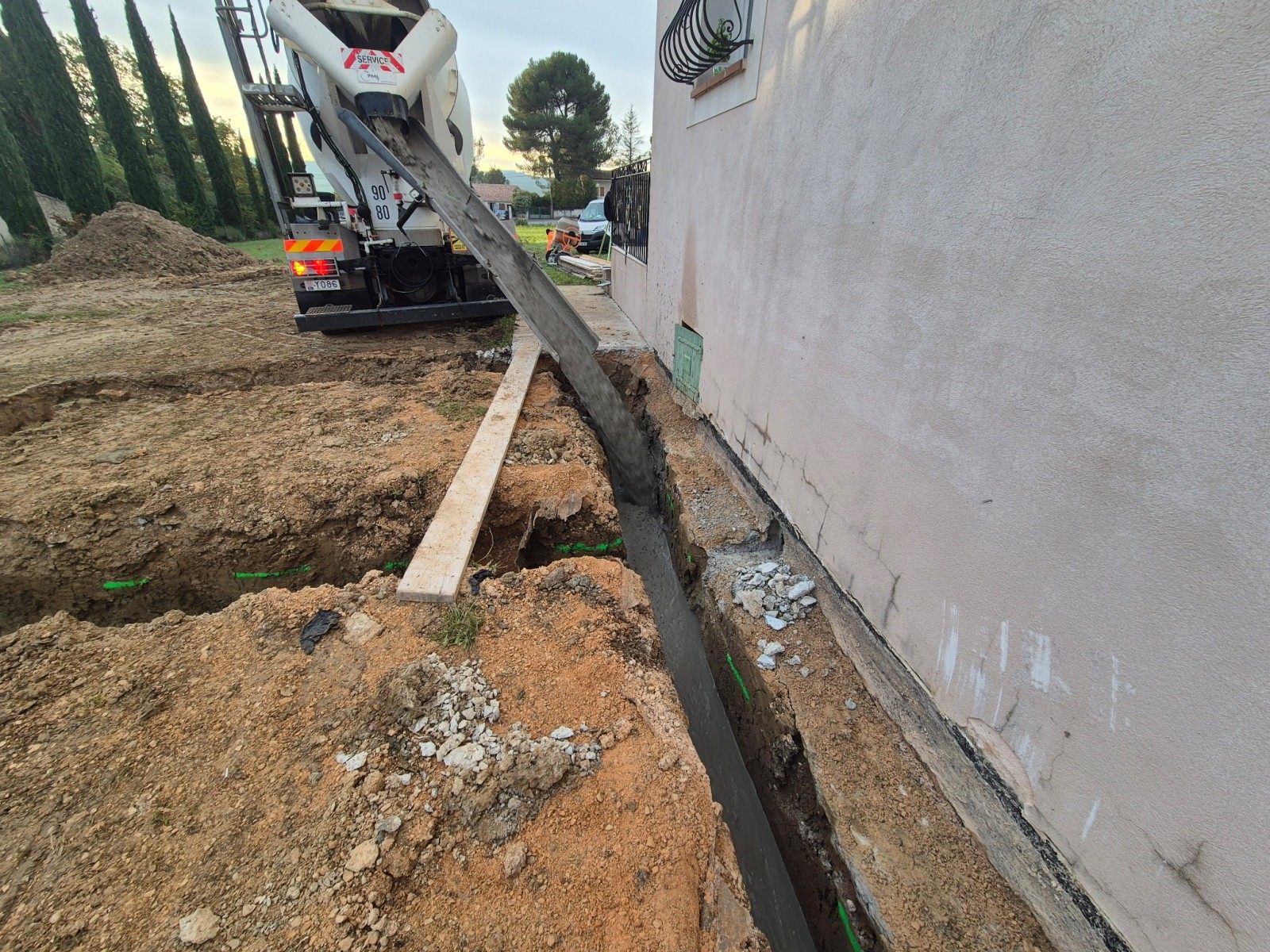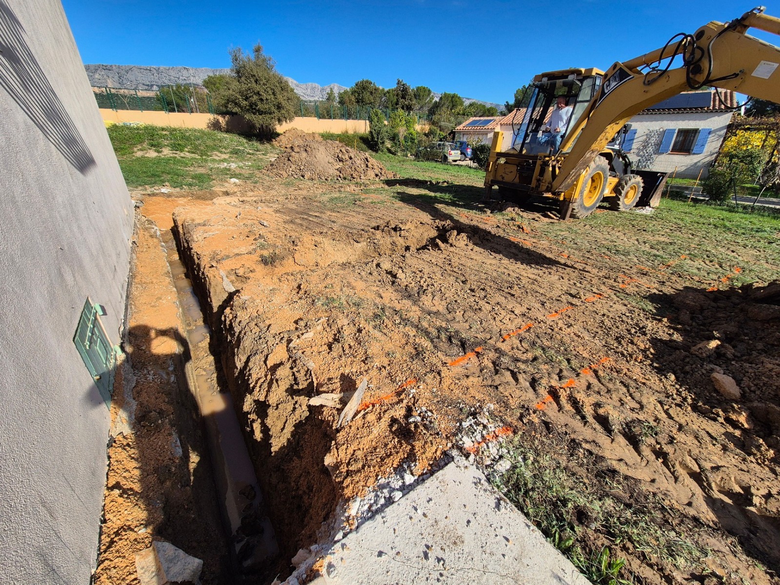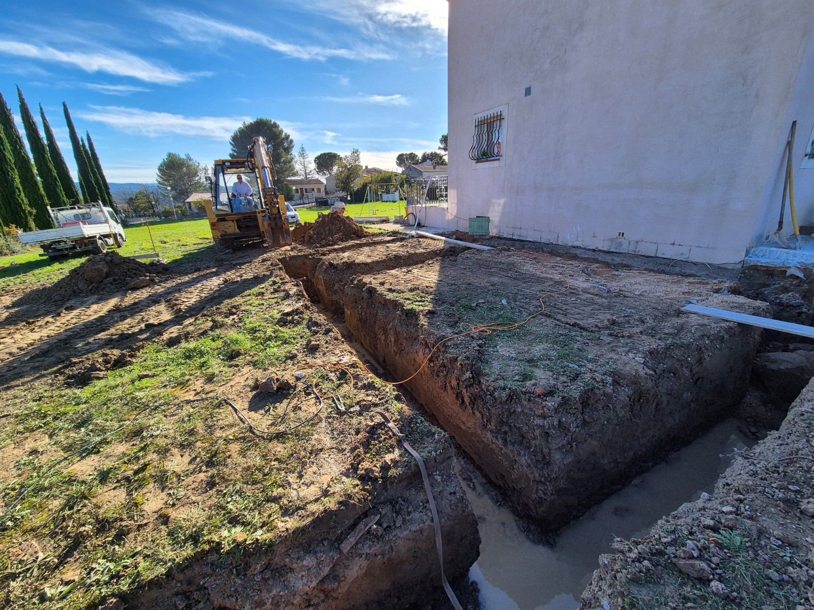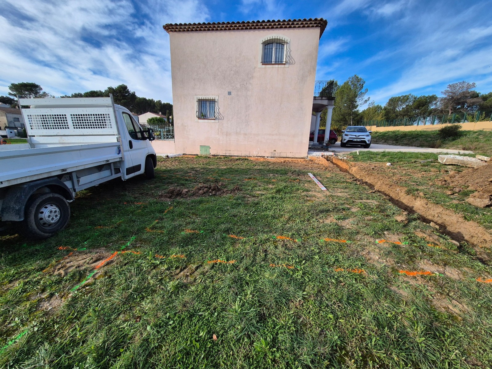 Nous sommes intervenus pour le terrassement et les fondations d’une extension de maison à Rousset, dans les Bouches-du-Rhône. Ces travaux constituent la base du futur bâti.